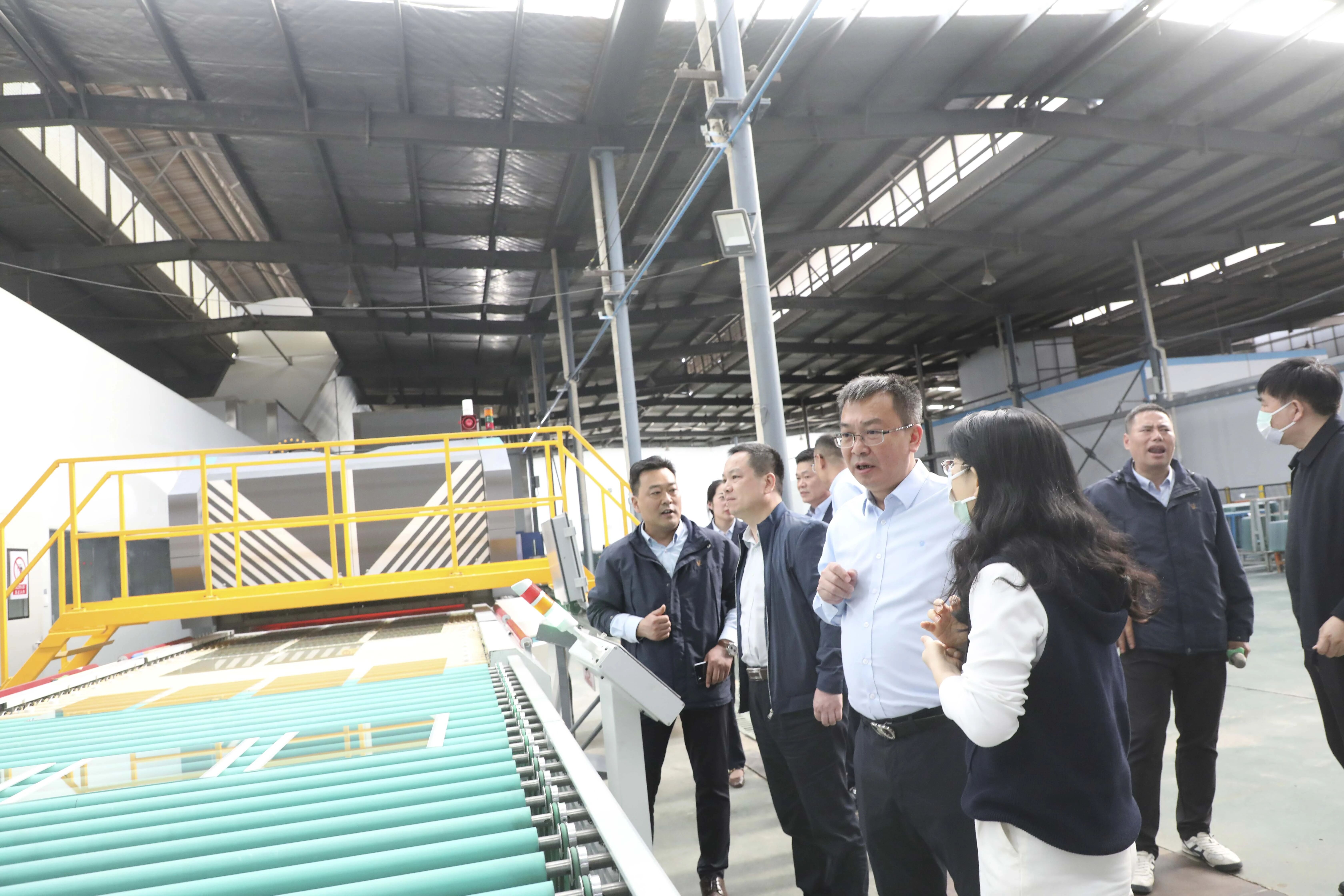 调研组先后调研公司B5厂房智能玻璃生产线、车间三组灶具玻璃激光打孔生产线及车间二组磨边自动连线钢化炉生产线等区域,通过现场考察、听取汇报、交流问询等方式,全面了解公司在产能扩张、技术升级与工程建设方面的推进成效。